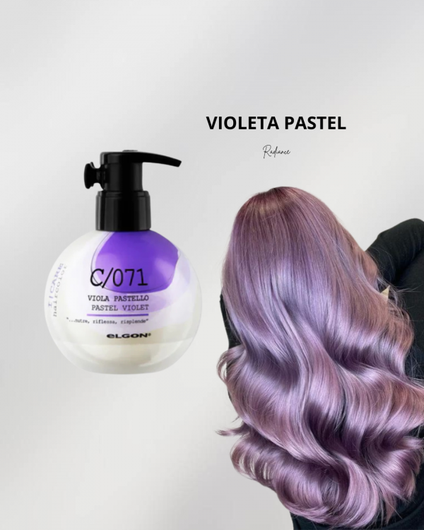 Mascarilla nutritiva con pigmento violeta pastel para aportar coloración temporal o reflejos.