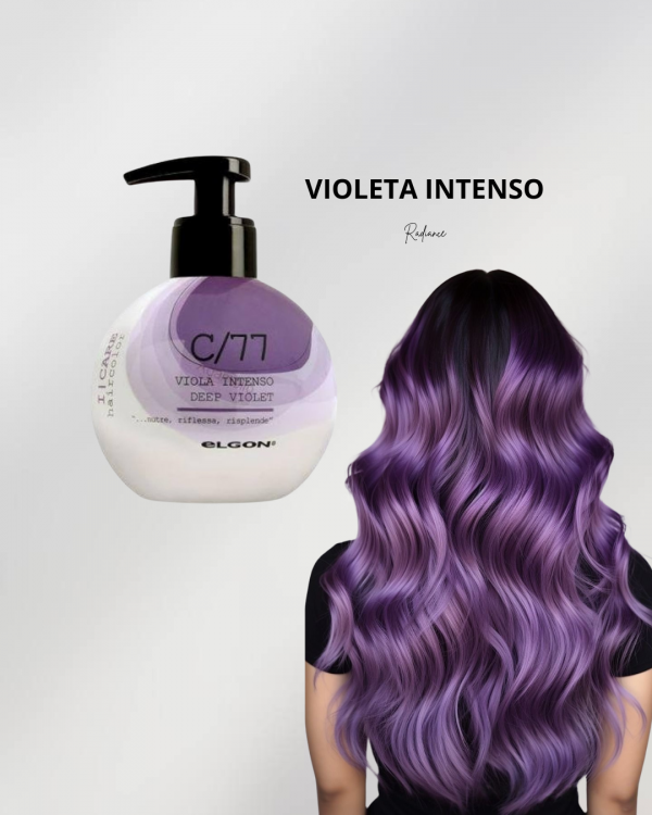Mascarilla nutritiva con pigmento violeta intenso para aportar coloración temporal o reflejos.
